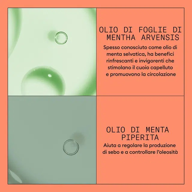 OLIO DI MENTA PIPERITA: Aiuta a regolare la produzione di sebo e a controllare l'oleositÃ