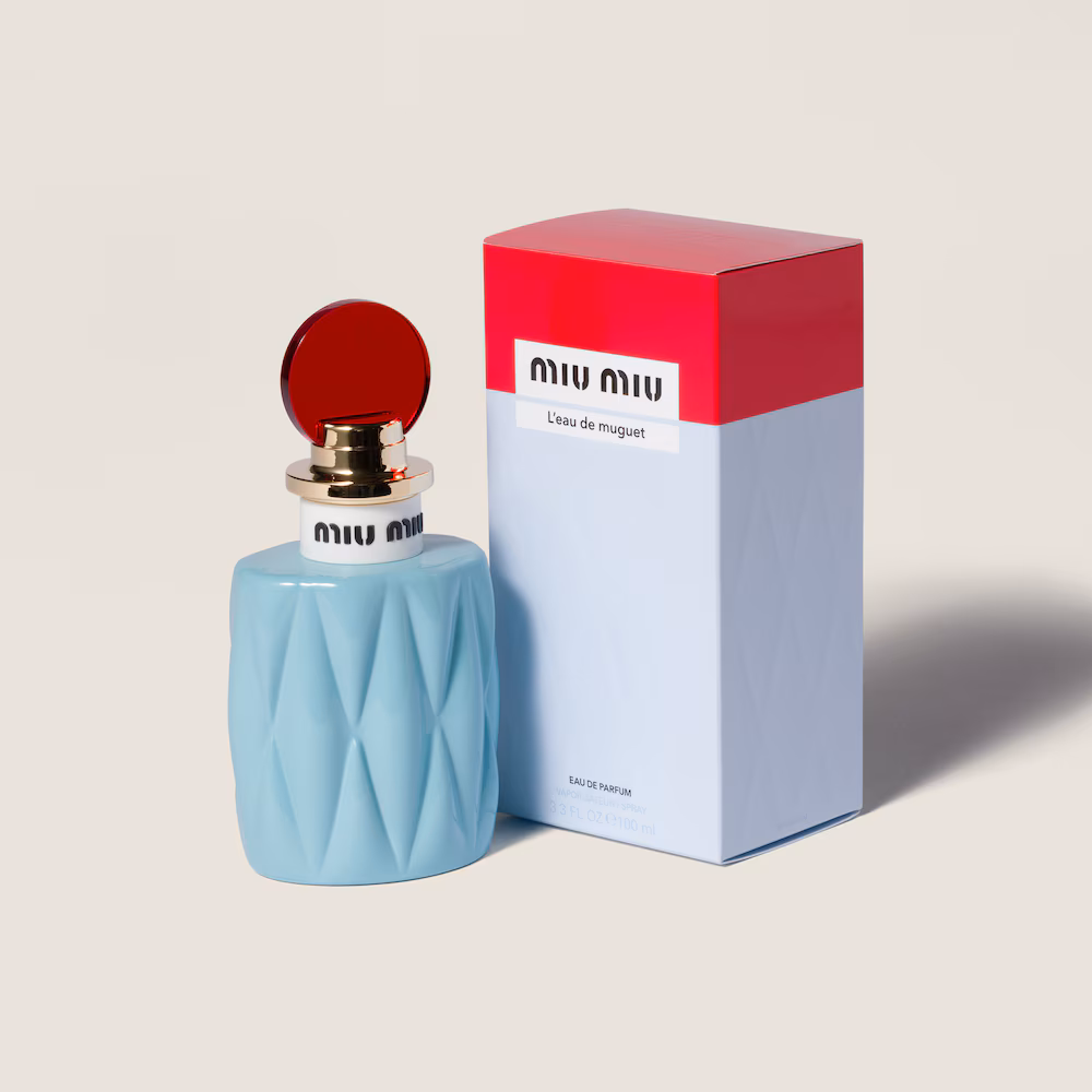 L’Eau de Muguet Eau de Parfum, la prima fragranza femminile firmata Miu Miu, è un bouquet muschiato, verde e fiorito che apre le porte a una femminilità ricca di contrasti. Naturale ed elegante, svela accordi trasparenti ma vibranti, capaci di catturare la giovane energia della primavera. Il mughetto, reinterpretato con personalità, si fa audace grazie a un sorprendente tocco terroso e speziato di Akigalawood.