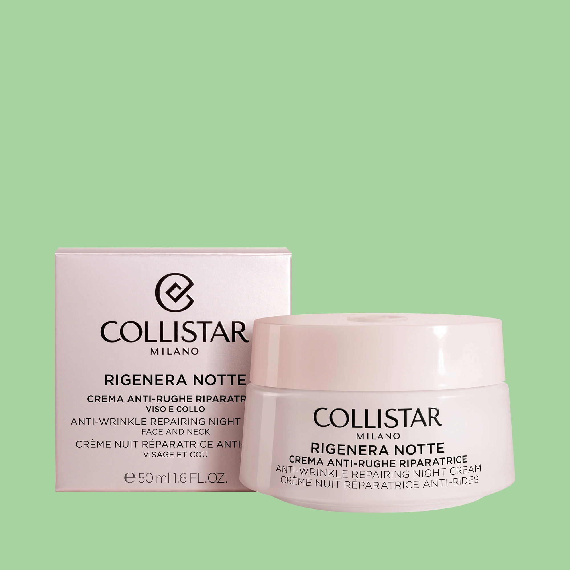 Crema notte antirughe nutriente specificatamente formulata per rigenerare in profondità la pelle durante le ore notturne.