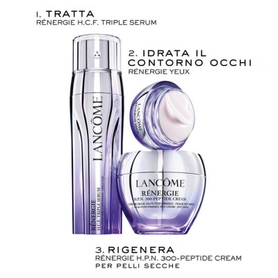 Per la prima volta, Lancôme unisce acido ialuronico, oltre 300 peptidi e il potere della niacinamide in un'unica crema alta performance.