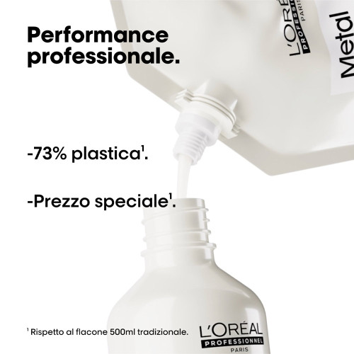 Lavaggio dopo lavaggio, le particelle metalliche, presenti nell'acqua, come il rame, possono penetrare nelle fibre dei capelli. Può attaccare l'integrità della fibra e cambiare colore. Ad alta concentrazione, può creare un rischio di danni, possono apparire riflessi indesiderati e influire negativamente sulla qualità del colore. Per prevenire danni e qualità del colore, le particelle metalliche possono essere neutralizzate. Lo shampoo crema detergente anti-metallo per rimuovere delicatamente le particelle metalliche dai capelli. Una tecnologia brevettata, arricchita con Glicoammina, la molecola che traccia e neutralizza il metallo all'interno della fibra. Formula sicura per il colore senza solfati. Colore più duraturo, 2 volte più brillante. La fibra è rinforzata, più resistente ai danni.I capelli sono più lisci, nutriti per 72 ore. Una ricca crema detergente senza solfati che si trasforma in una schiuma concentrata. Facile da risciacquare. La fragranza Metal Detox ha una firma tecnologica unica, grazie a un memorabile top di agrumi associato a distintivi legni muschiati. Seguire con la maschera protettiva anti-deposito Metal Detox per capelli colorati e danneggiati per proteggere la fibra da danni e nuovi depositi di particelle per un'esperienza Metal Detox ottimale a casa.