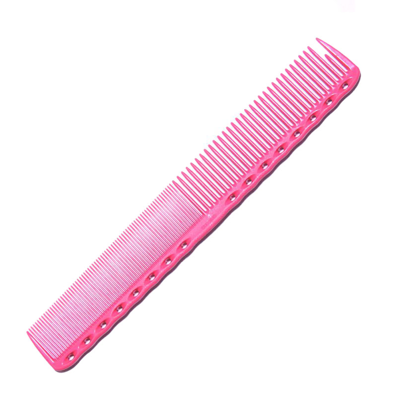 L' YS-336 Cutting Comb è un pettine da taglio ottimo per capelli corti e lunghi e con spina dorsale ondulata per una migliore presa. Realizzato in IMIDO super plastica giapponese utilizzato in alcune parti degli aerei, resistente al calore e agli agenti chimici . Quello in Carbon Black contiene carbonio per antistatico. Il dente accorciato sul bordo del pettine chiamato Parting Space Head per un facile sezionamento. I fori del dorso centimetrico forniscono forza e flessibilità di tutto il corpo del pettine. I fori sono a intervallo di 1 cm che permettono di misurare la lunghezza precisa. È stato sviluppato nei saloni ed è stato supportato da molti professionisti in tutto il mondo.