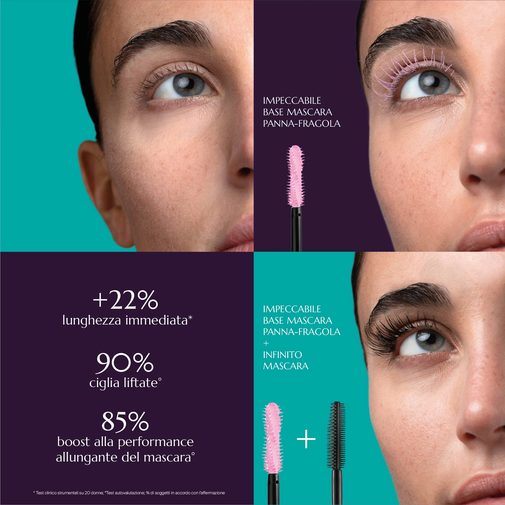 Dal successo di Impeccabile Base Mascara Latte-Menta nasce Impeccabile Base Mascara Panna-Fragola, il nuovo primer ciglia ad azione allungante che dona extra-lunghezza e definizione, amplificando i risultati del mascara.