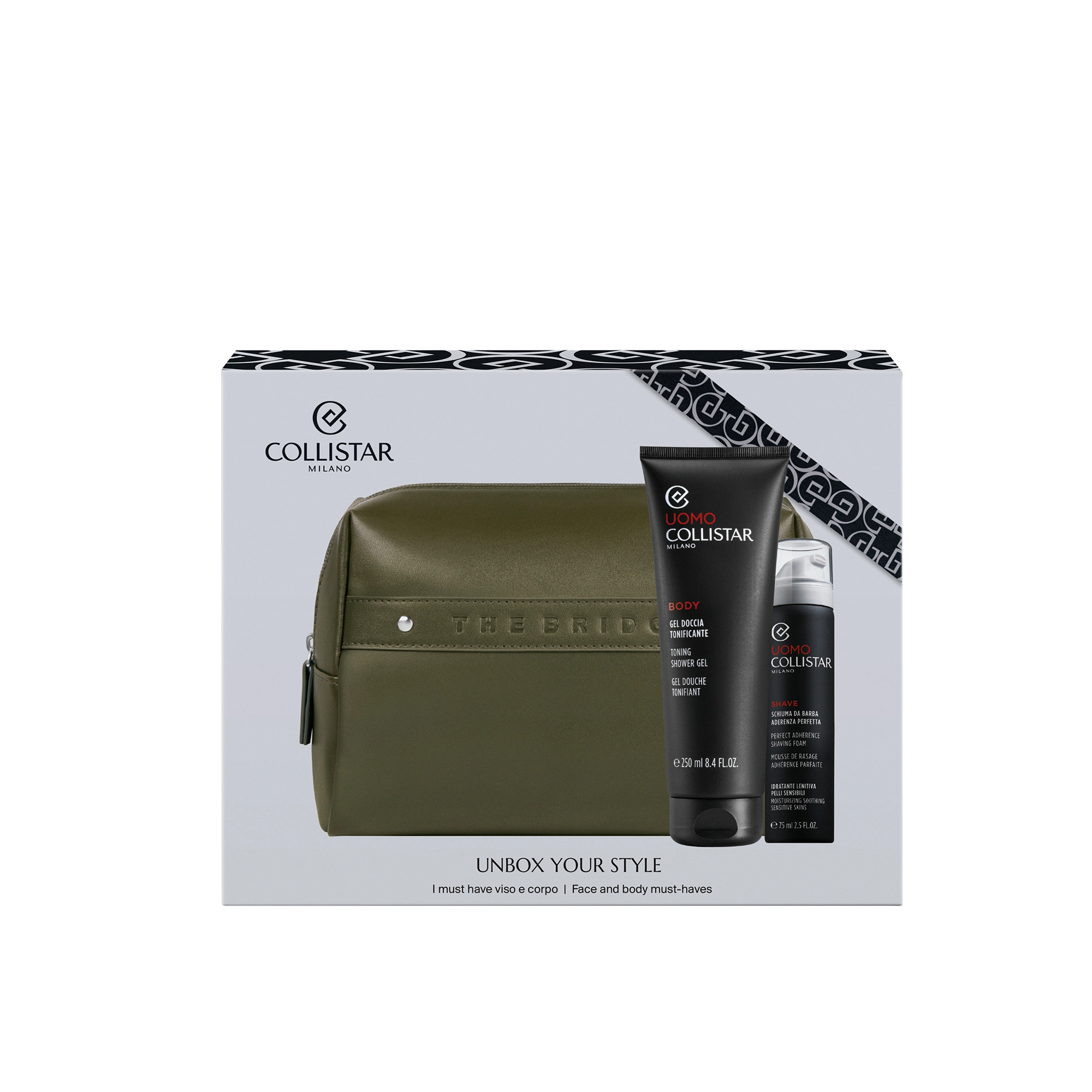 POCHETTE THE BRIDGE: The Bridge, eccellenza della pelletteria italiana, firma le esclusive Beauty-Bag dei cofanetti regalo Collistar. Le trousse dal design elegante ed essenziale sono abbinate ai prodotti Collistar più amati: scegli la tua combinazione tra le proposte delle linee Trucco, Viso, Corpo e Uomo.