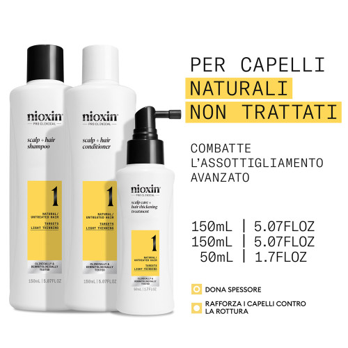 Per vedere i risultati, utilizzare ogni giorno il kit completo del Sistema 1 di Nioxin.