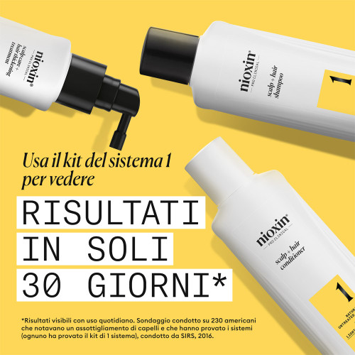 Per vedere i risultati, utilizzare ogni giorno il kit completo del Sistema 1 di Nioxin.