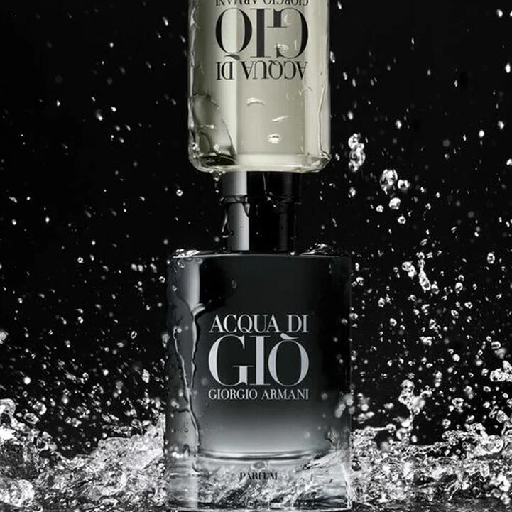 Acqua Di Giò Parfum introduce una nuova freschezza intensa nella collezione. Le note di testa fondono cuore di bergamotto, zenzero e intense note marine, mentre il cuore racchiude un cuore di geranio bourbon, essenza di rosmarino e cuore di salvia sclarea. Nel fondo, legni intensi, essenza di patchouli e incenso creano un'aura di mistero. Questa fragranza potente è contraddistinta dalle note di incenso, che apportano un'intensità incandescente alle emblematiche note marine di Acqua di Giò. Una nuova preziosità è evocata dal design del flacone, declinato in eleganti linee maschili e realizzato nei toni del nero sfumato. In linea con l'impegno di Giorgio Armani per un futuro migliore, Acqua di Giò è ricaricabile in tutti i formati usando il flacone di ricarica da 150 ml. L'eco-concept di Acqua Di Giò Parfum non comprende solo il flacone ricaricabile, ma anche gli ingredienti naturali e di provenienza sostenibile.