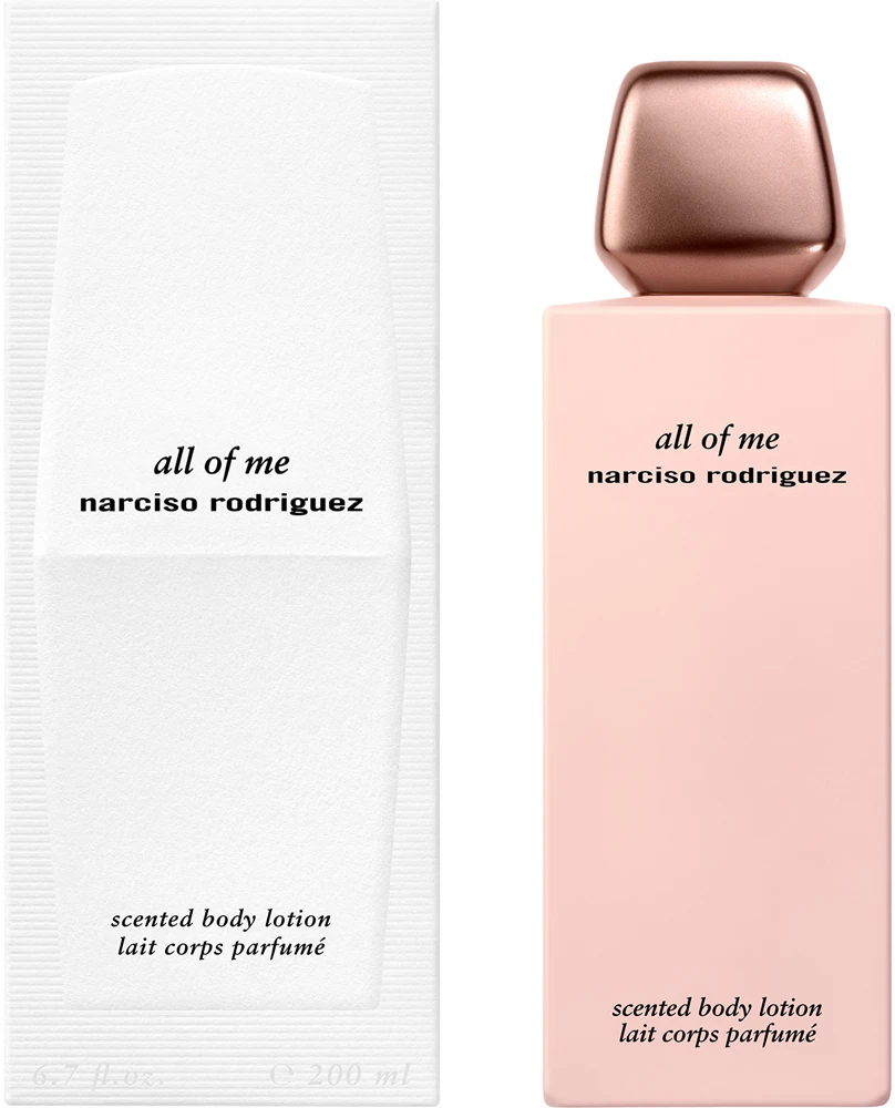 Questa lozione per il corpo vellutata dona un effetto idratante duraturo e lascia la pelle generosamente profumata con la fragranza all of me, il nuovo profumo femminile di narciso rodriguez. Celebrazione dell’individualità e dell’espressione di sé, all of me reinventa il profumo floreale fondendo la preziosa rosa centifolia con l’audace geranio bourbon, una nota solitamente riservata alle fragranze maschili. Insieme a questo duo distintivo di rosa e geranio, un accordo di delicati muschi bianchi con note lattee reinterpreta l’iconica firma narciso rodriguez. Sei diverse note muschiate si fondono per creare un'essenza inebriante, come una seconda pelle, apportando ciascuna una nuova dimensione al mix sfaccettato di note fiorite.