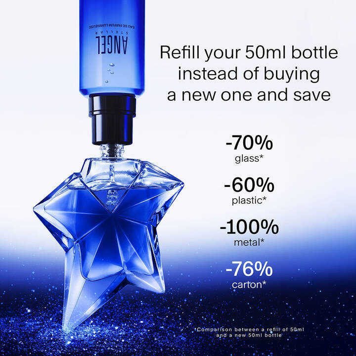 la nuova luminosa eau de parfum trasfigura la golosità in una femminilità abbagliante e ultra-glamour. l’accordo di pistacchio cremoso e irresistibile si scontra con scintille di bergamotto abbagliante e legni affascinanti per creare una luminosa delizia galattica. l’angel più glamour di sempre, catturato in una nuova e vivace stella blu cobalto. potenzia il glamour che c'è in te.