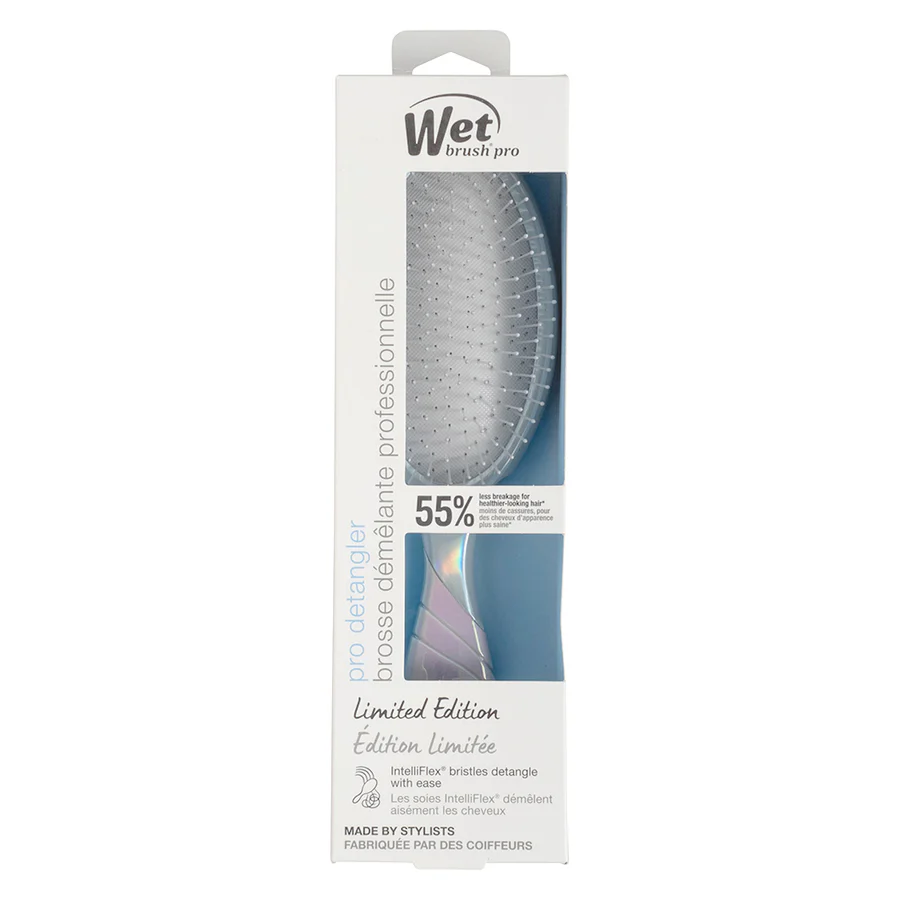 La nuova Wet Brush® Iridescent Icon è la spazzola districante ideale per capelli bagnati o asciutti, progettata per ridurre la rottura e prevenire i danni da spazzolatura. Grazie alle sue setole ultra-flessibili Intelliflex®, districa delicatamente anche i nodi più difficili, senza tirare e senza spezzare i capelli. Perfetta per tutti i tipi di capelli – lisci, mossi, ricci o trattati – questa spazzola garantisce una districatura veloce, efficace e indolore. Il suo design iridescente dona un tocco glamour alla tua routine di bellezza, con una finitura cangiante che cattura la luce e valorizza ogni momento della tua hair care. Ideale per capelli bagnati.