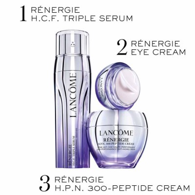 Scopri una nuova era nei trattamenti anti-età ad alta performance. Lancôme si ispira alla Scienza della Rigenerazione ed introduce il nuovo Rénergie H.C.F. Triple Serum , un siero anti-età concentrato che racchiude nella sua formula una combinazione ottimale di ingredienti attivi per favorire il potenziale rigenerativo della pelle e mantenerla giovane: Acido Ialuronico, Vitamina C + Niacinamide e Acido Ferulico. Ogni formula è racchiusa in un triplice erogatore innovativo, in 3 camere separate , che la proteggono dall'aria, luce e dalle impurità, preservandone così l'efficacia ottimale prima dell'applicazione. All'utilizzo, si fondono perfettamente. Prova i benefici anti-età degli efficaci attivi contenuti in questa innovativa formula: il potere idratante dell’Acido Ialuronico incontra le proprietà antiossidanti di Niacinamide, Vitamina C e Acido Ferulico, per un effetto antirughe specifico per pelli mature che desiderano mantenere la pelle giovane nel tempo.