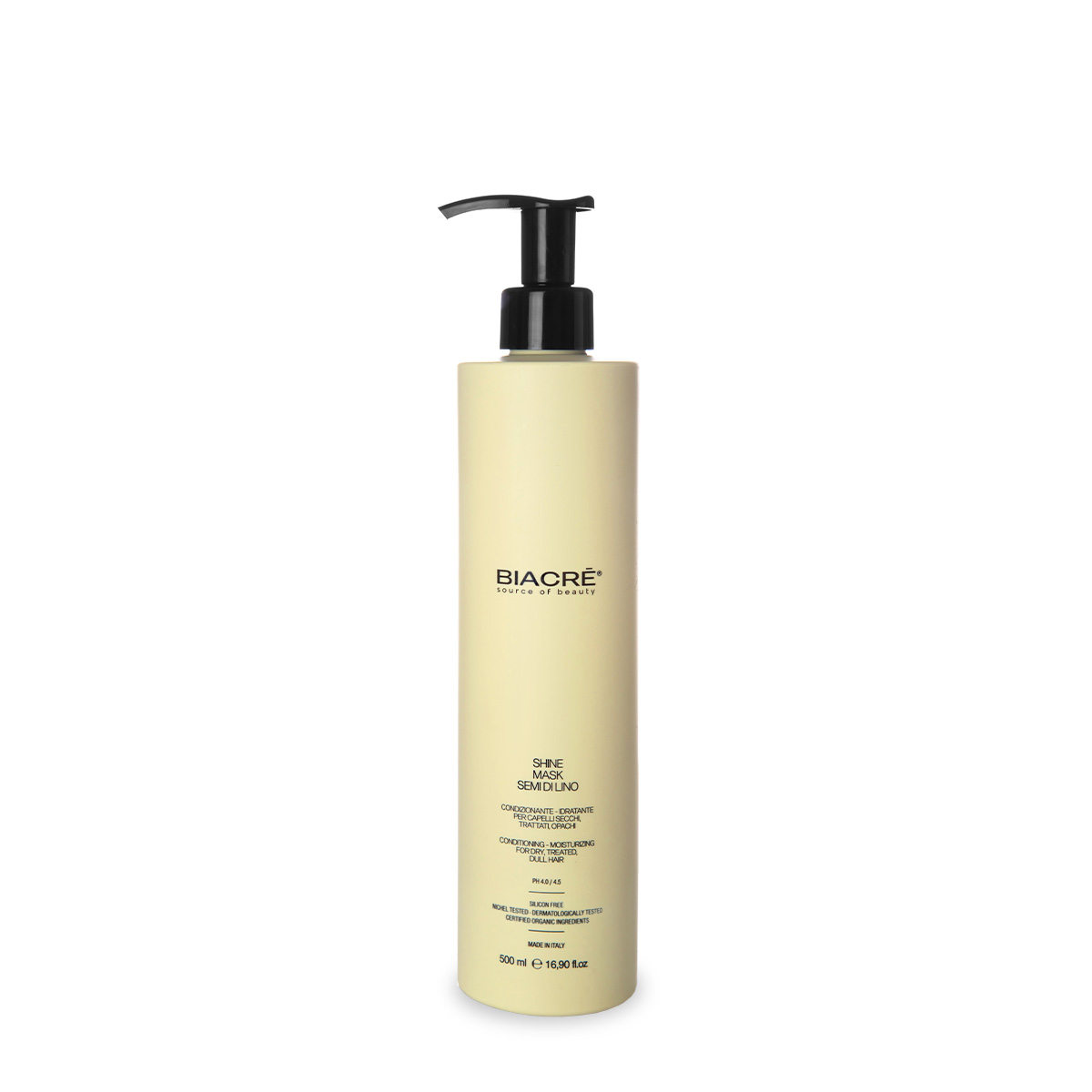 Maschera condizionante intensiva per tutti i tipi di capelli, in particolare secchi, trattati, opachi. Con Olio di Semi di Lino, Estratti Bio di Aloe, Arnica e Avena per migliorare la struttura e conferire elasticità e idratazione.
