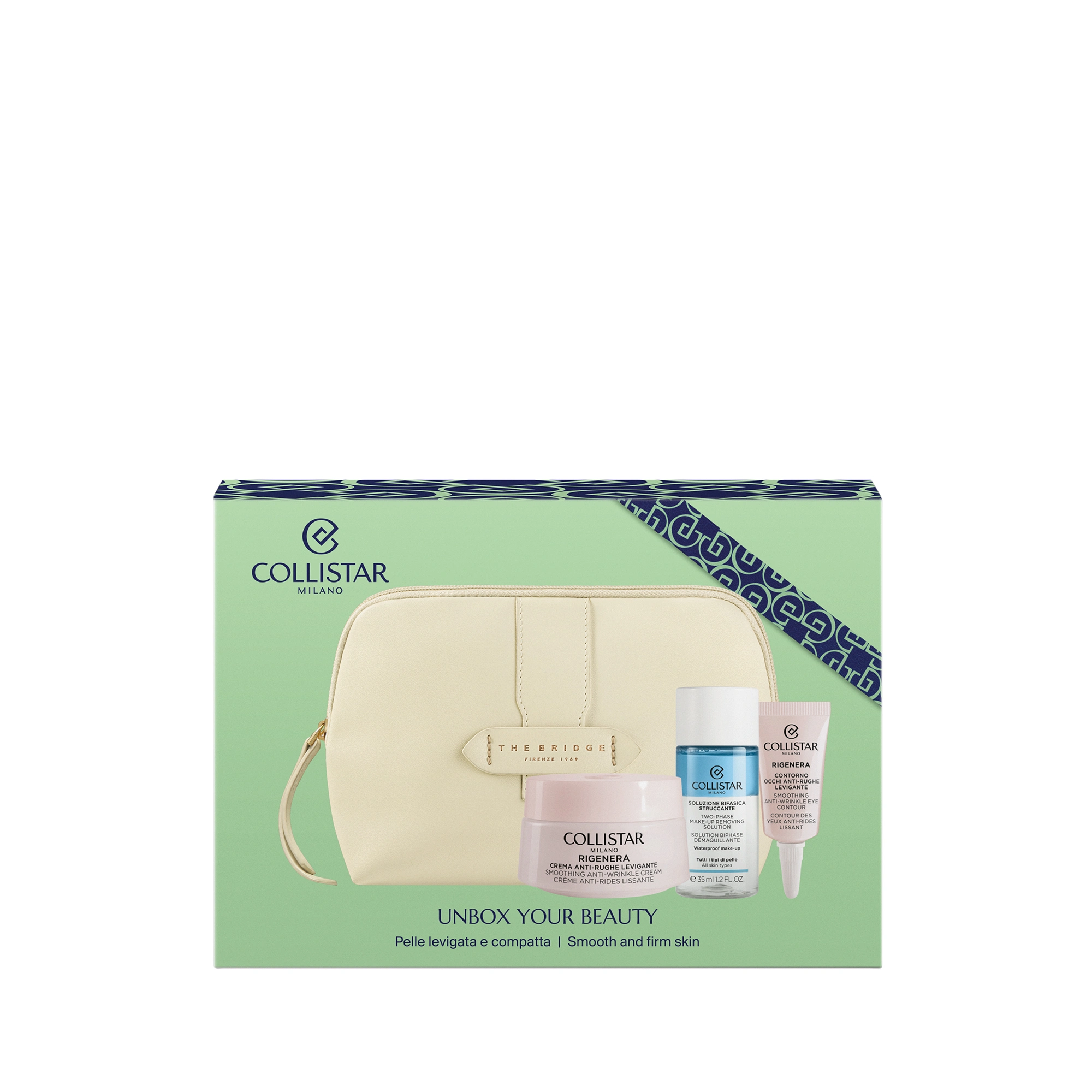 POCHETTE THE BRIDGE: The Bridge, eccellenza della pelletteria italiana, firma le esclusive Beauty-Bag dei cofanetti regalo Collistar. Le trousse dal design elegante ed essenziale sono abbinate ai prodotti Collistar più amati: scegli la tua combinazione tra le proposte delle linee Trucco, Viso, Corpo e Uomo.